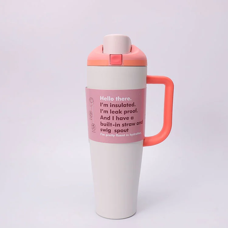 Ceadaíonn cupán Teirmeach 40oz Kudike faisin duit uisce a athlánú níos minice agus an líon uaireanta a chuireann tú uisce leis a laghdú. Is féidir leis an gciseal inslithe an dí a choinneáil fionnuar ar feadh roinnt uaireanta, agus tá an láimhseáil durable áisiúil duit a iompar timpeall. Tá an cupán inslithe cruach dhosmálta 40 unsa seo éasca le hiompar agus féadann sé a bheith oiriúnach fiú i bhformhór na sealbhóirí cupáin gluaisteáin. Is féidir leis tú a choinneáil fionnuar ar feadh i bhfad, agus ligeann an tuí bog duit deoch mar is mian leat.