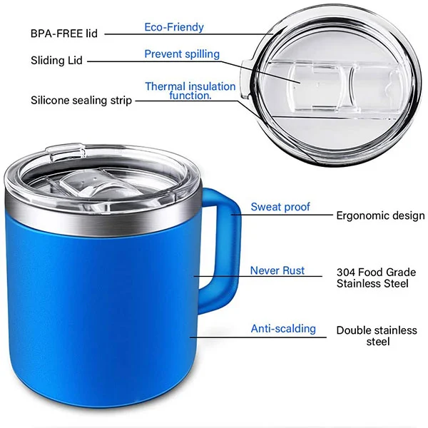 - Soláthraíonn an comhlacht cupán díreach agus an dromchla réidh greim compordach, rud a fhágann go bhfuil sé éasca é a chur isteach in aon sealbhóir cupáin, póca taobh backpack, agus mála láimhe - beagnach áit ar bith.