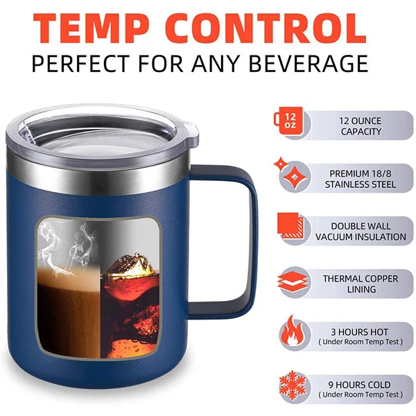 - Glacann an Mug Inslithe Fholúis 450ml dearadh inslithe bhfolús ciseal dúbailte, le naisc gan uaim ar na ballaí istigh, ag feabhsú go mór feidhmíocht inslithe.