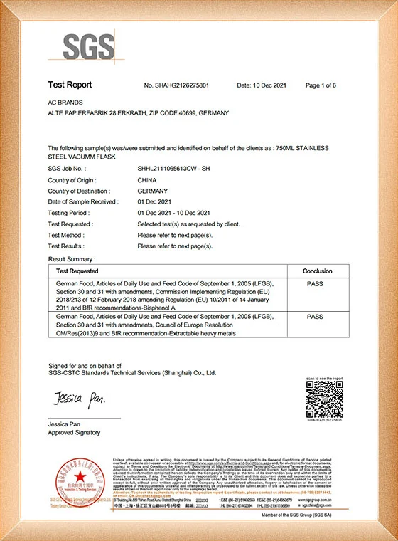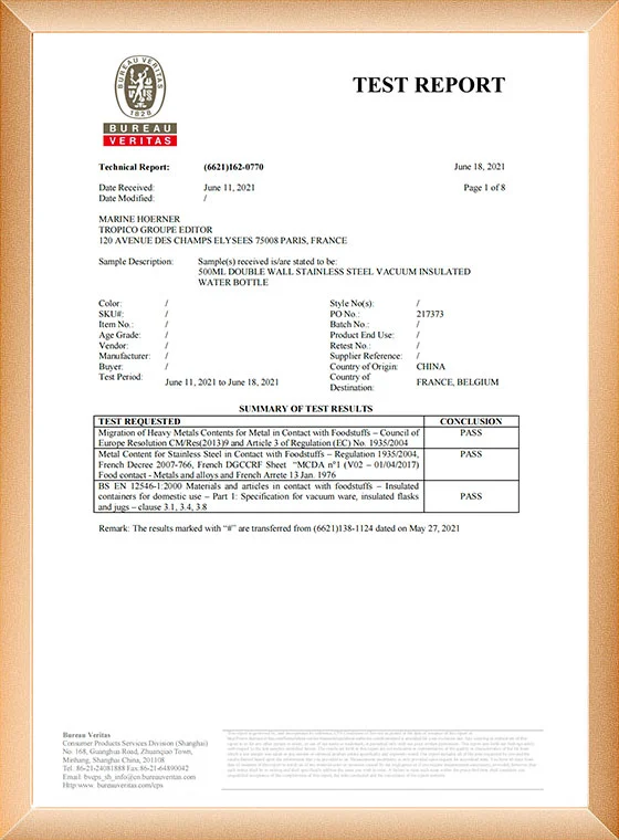 Tá foireann taighde agus forbartha neamhspleách againn, le cupán thermos cruach dhosmálta neamhspleách paitinnithe. Tá an mhonarcha tar éis cigireacht agus deimhniú BSCI a rith.