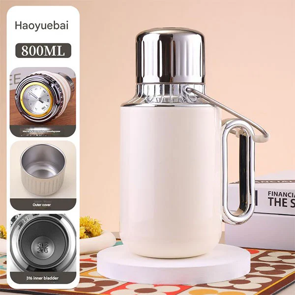 Tá dearadh stylish ag an mbotella taispeána teochta seo le comhlacht leathan agus béal caol, rud a fhágann go bhfuil sé éasca a ghlanadh agus a chothabháil.