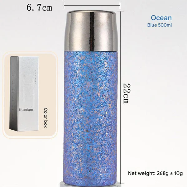 Is é an gné buidéal Tíotáiniam seo cupán sceitheadh-cruthúnas déanta as 99.9% tíotáiniam íon! Gan sciath ceimiceach! Tá tíotáiniam, a bhfuil dea-bhith-chomhoiriúnacht agus friotaíocht creimeadh aige, níos fearr ná gnáth-ábhair mar alúmanam, plaisteach, gloine agus cruach dhosmálta. Tá sé neamh-tocsaineach, sábháilte, agus sláintiúil, agus ní chuirfidh sé aon blas nó boladh le bia nó deochanna. Is féidir a nádúr ath-inúsáidte a bheith in éineacht leat ar feadh blianta fada.